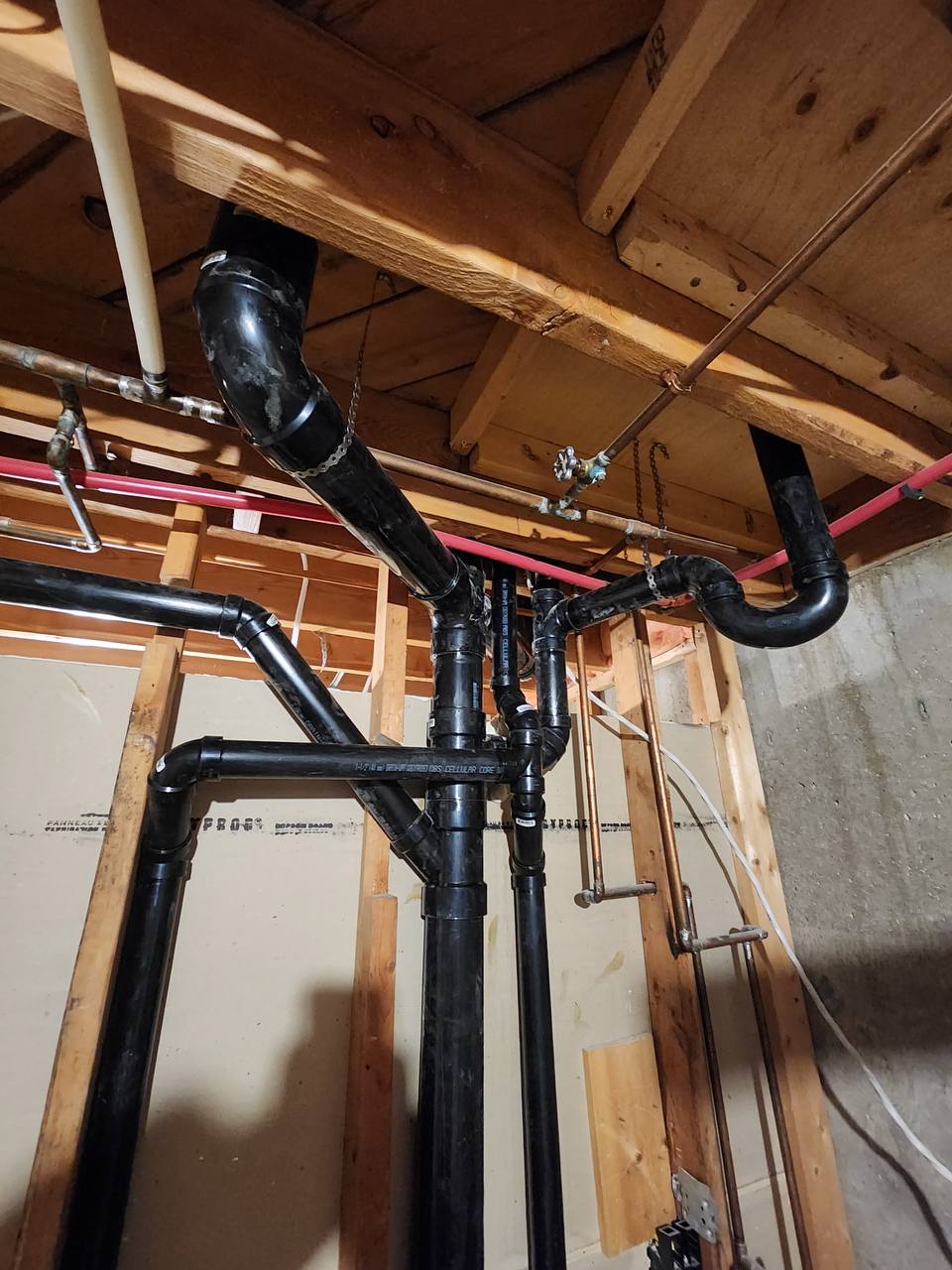 This project involved a full drain, waste, and vent (DWV) rough-in, installed with clean routing, correct pipe sizing, and proper support throughout the framing.